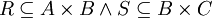 ההגדרה: [math]\displaystyle{ R \subseteq A\times B \and S \subseteq B\times C }[/math] אזי [math]\displaystyle{ (a,c)\in S \circ R \iff \exist b \in B :(a,b) \in R \and (b,c) \in S }[/math]