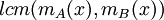 לכן, [math]\displaystyle{ m_A(x)|f(x) }[/math] וגם [math]\displaystyle{ m_B(x)|f(x) }[/math], כלומר f הוא כפולה משותפת של [math]\displaystyle{ m_A(x),m_B(x) }[/math].